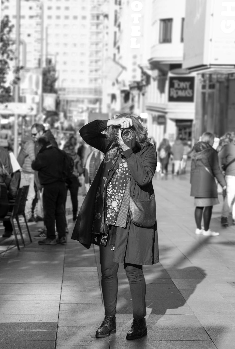Fotograferen vind ik geweldig. Ik word er blij van. Na mijn pensioen vond ik echt de tijd om cursussen te volgen en lid te worden van twee fotoclubs. Lid zijn van een fotoclub betekent dat je veel kunt leren van (het werk van) anderen en van de feedback op je werk. Het liefst fotografeer ik mensen. Mensen op straat, die niet in de gaten hebben dat ze gefotografeerd worden. Die vooral doorgaan met wat ze aan het doen zijn. Maar ook mooie plekken in steden fotografeer ik graag. En heel lelijke plekken. En landschappen. Ruige zee. Een dromerig meertje. En o ja, zonsondergangen. En het interieur van kathedralen. En… en…!! Eigenlijk alles. Alles wat zich onverwacht aandient.